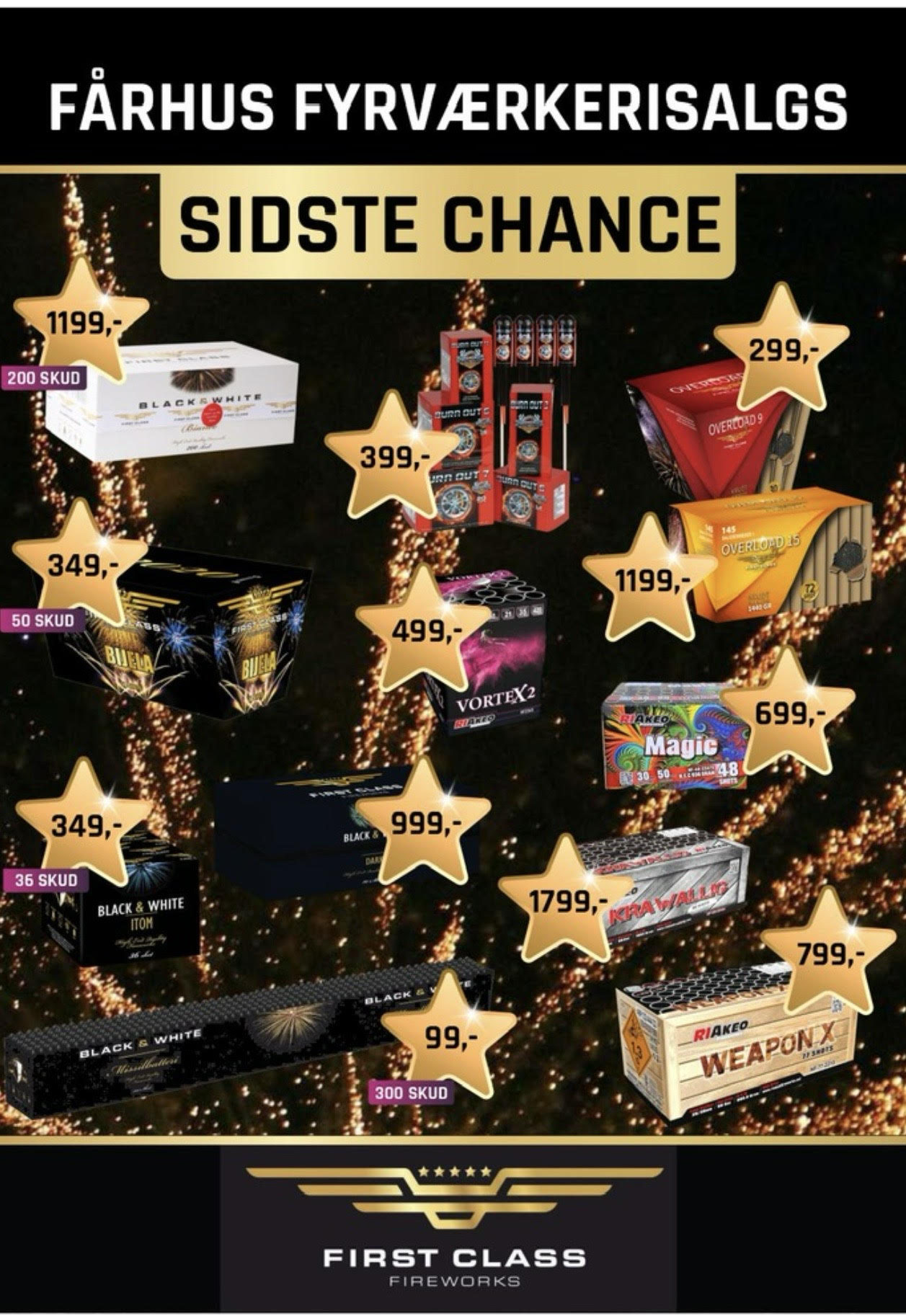 Fårhus forsamlingshus forsamlingshuset der er dummys af alle vare og storskærm så man kan se demo af alle first class produkter . der er kaffe vand saft m.m og popkorn gratis , vi har også hatte sjov glimmer bordpynt . der er altid nogle fede tilbud som ikke er i bladet så kom til os i fårhus og støt forsamlingshuset for alt overskud går til forsamlingshuset følg os på Facebook . FÅRHUSFYRVÆRKERISALG